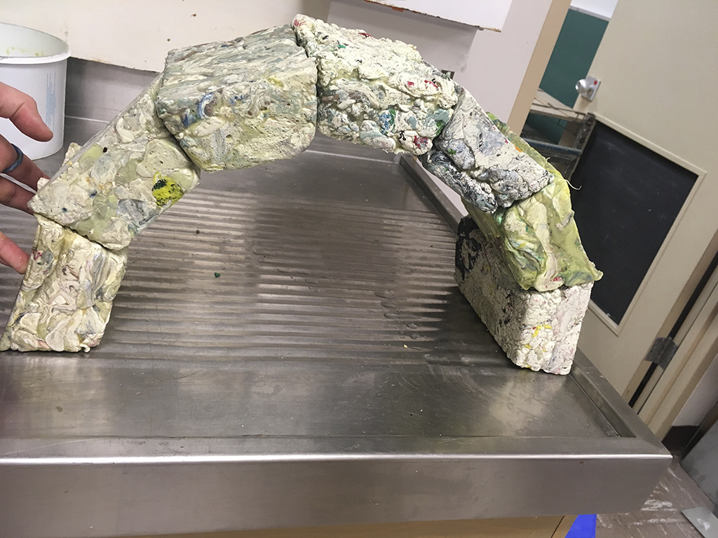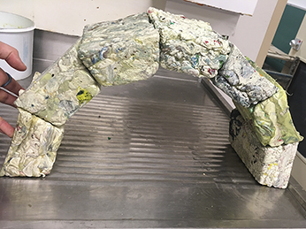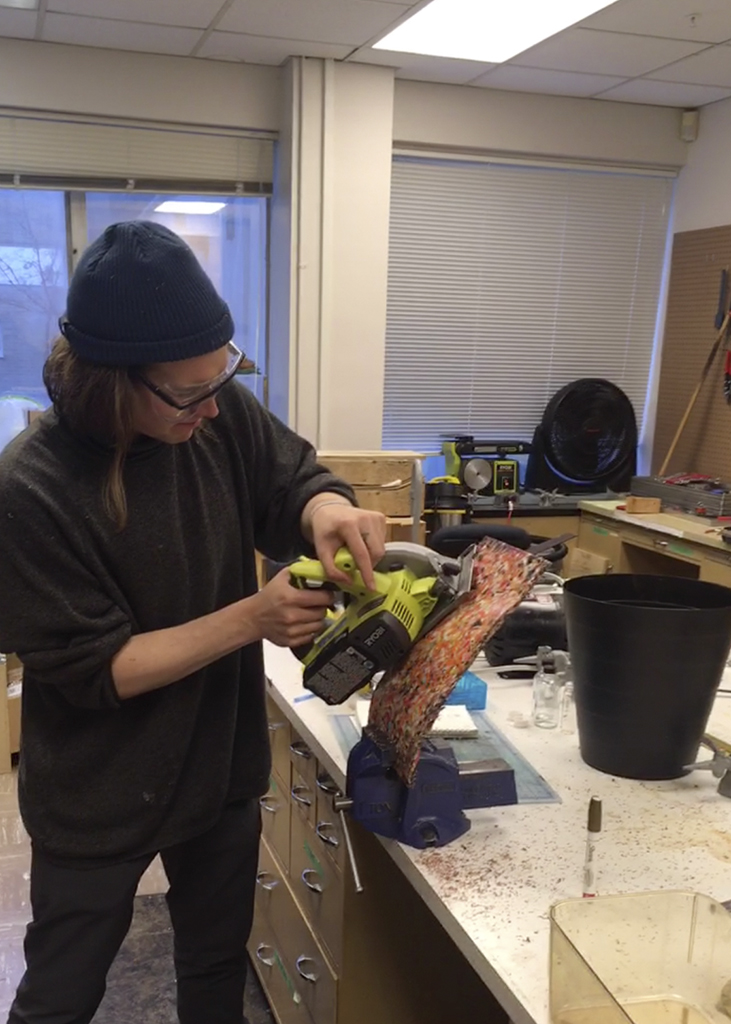 At the end of my visual art degree, I had the opportunity to work as an artist in the Melt Collective lab for the end of my visual art degree. I came to the lab with loose ideas about recycling plastic bags, however it turned into a 6 month working relationship where I got to experiment with all sorts of plastic the engineers there were recycling into a new resource. I continued my project, experimenting with melting plastic bags, and molding them into new forms, however I also brainstormed and prototyped other uses for the plastics they were recycling. At the end, I built an archway using bricks made from about 10,000 plastic bags.